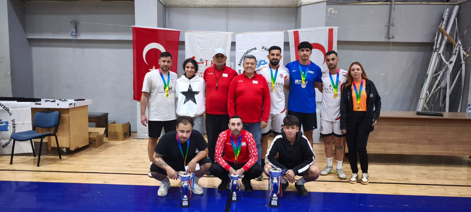 Futbol Tenisi Federasyonu tarafından 15 Kasım KKTC’nin kuruluş yıldönümü etkinlikleri çerçevesinde organize edilen kadınlar ve erkekler ikili Futbol Tenisi Şampiyonası dün gerçekleştirildi.
