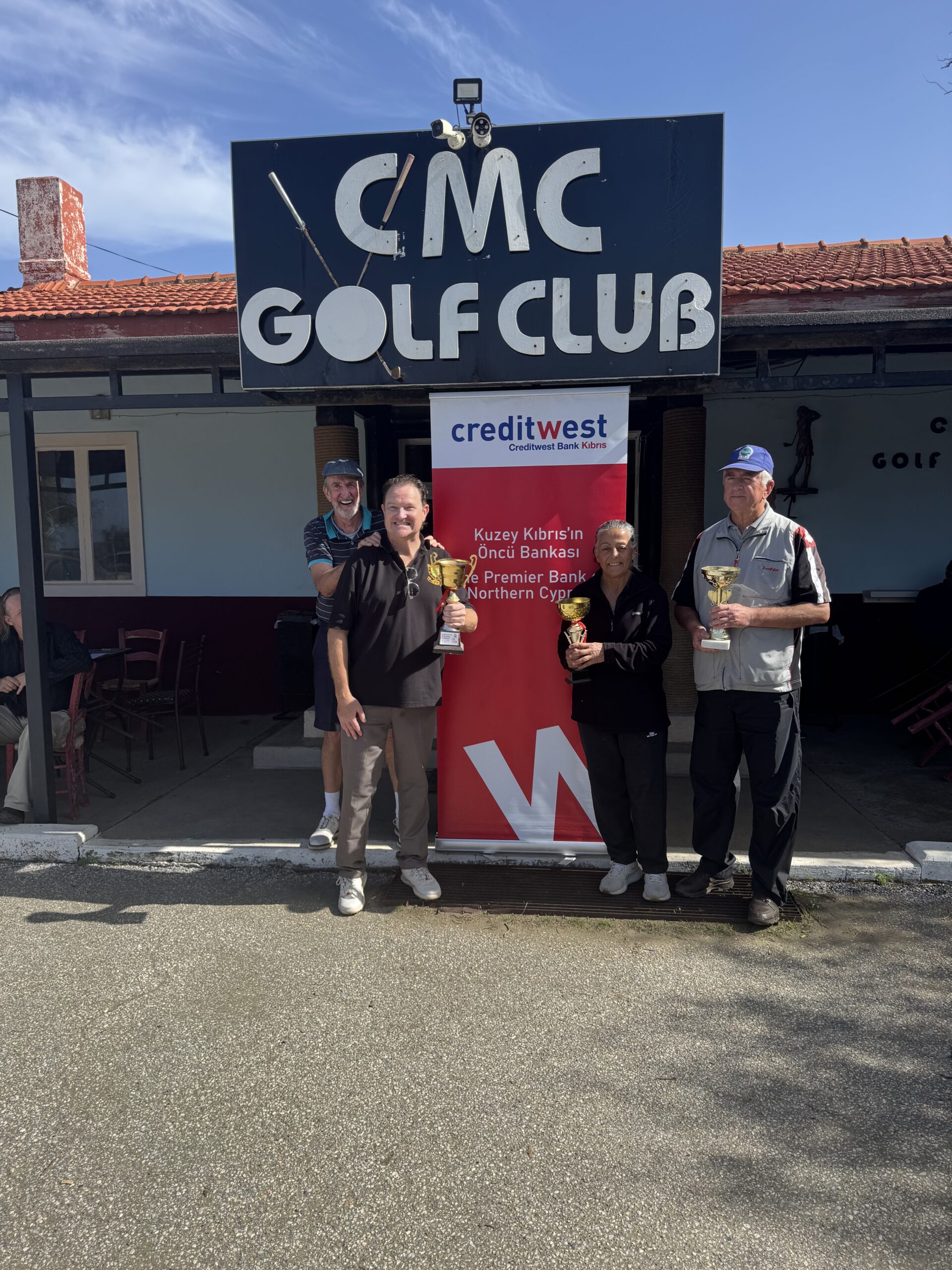 CMC Golf Kulübü Yeşilyurt sahasında, Creditwest Bank sponsorluğunda 8 Şubat Pazar günü gerçekleşen ve 3 kişilik takımların, yapılan en iyi vuruşun seçilerek oynadığı Texas Scramble golf turnuvasında Sabriye Holland & Mahmut Kahraman & Gareth Griffiths takımı, oldukça iyi sayılacak bir performans sonrası 60 Net ile şampiyon oldu.